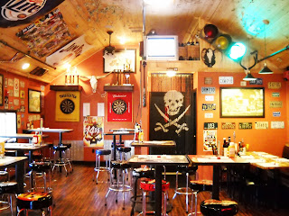 We entered to a somewhat empty place, a little disappointing but it was a Sunday afternoon of a long weekend...think most businesses are slow on long weekends. As is the outside, the decor inside is geared towards bikers and motor enthusiasts in general, with skulls, license plates, old signs, and Nascar memorabilia.
